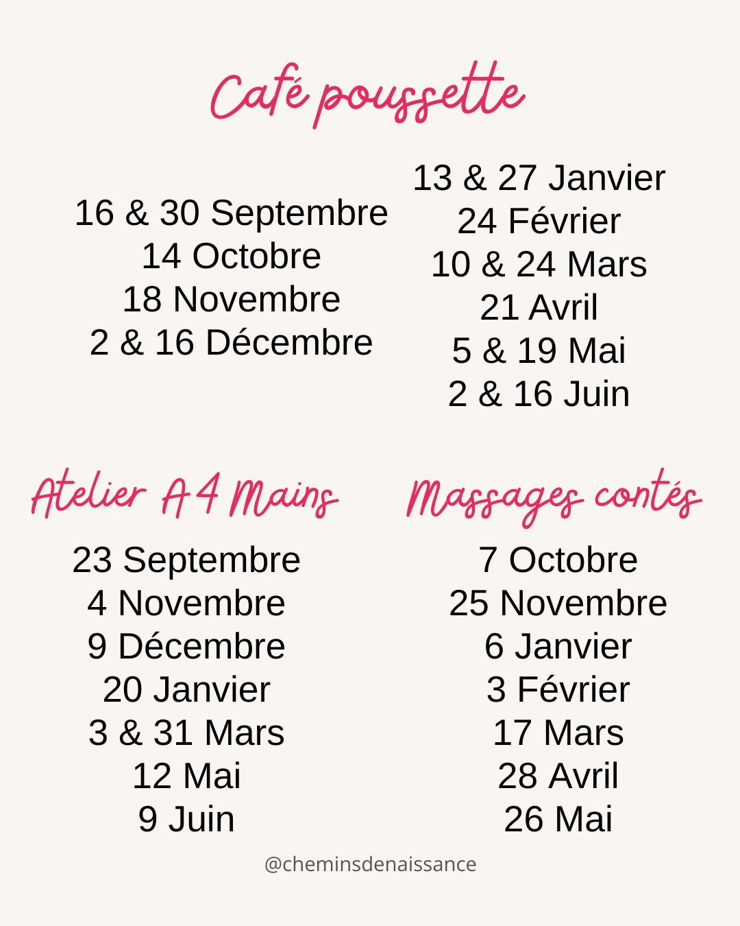 Possibilité de contacter Vanessa Legros, intervenante, au 06.07.66.95.38 avant les rencontres pour tout renseignement.
